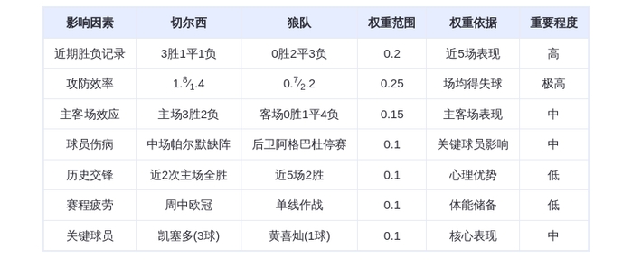 切尔西在进攻端优势明显(进球18vs7),而狼队防守核心阿格巴杜停赛将加剧后防危机。凯塞多领衔的中场拦截能力(25次赛事第1)将有效遏制狼队本已疲软的进攻。原文出处:DeepSeek预测:切尔西vs狼队!蓝军主场狂轰滥炸,凯塞多领衔火力全开!,感谢原作者,侵权必删!